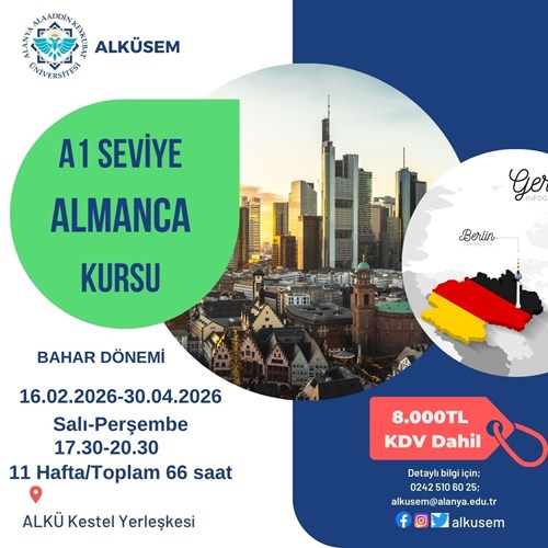 Üniversitemiz Sürekli Eğitim Uygulama ve Araştırma Merkezi tarafından “A1 Seviye Almanca Kursu” açılacaktır.