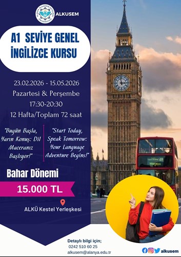 Üniversitemiz Sürekli Eğitim Uygulama ve Araştırma Merkezi tarafından “A1 Seviye Genel İngilizce Kursu” açılacaktır.