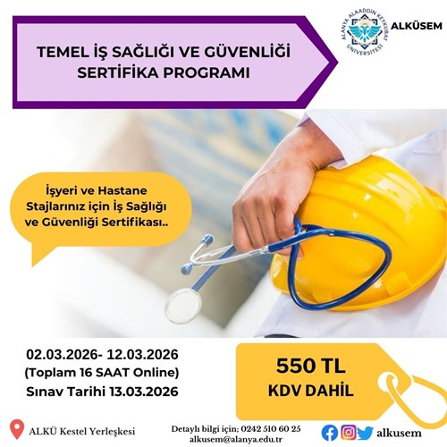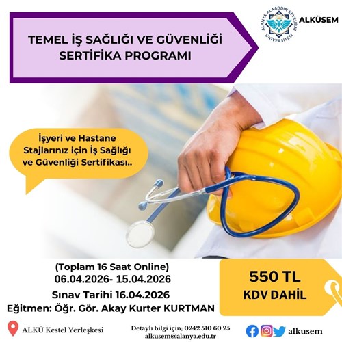 Üniversitemiz Sürekli Eğitim Uygulama ve Araştırma Merkezi tarafından “Temel İş Sağlığı ve Güvenliği Sertifika Programı” açılacaktır.